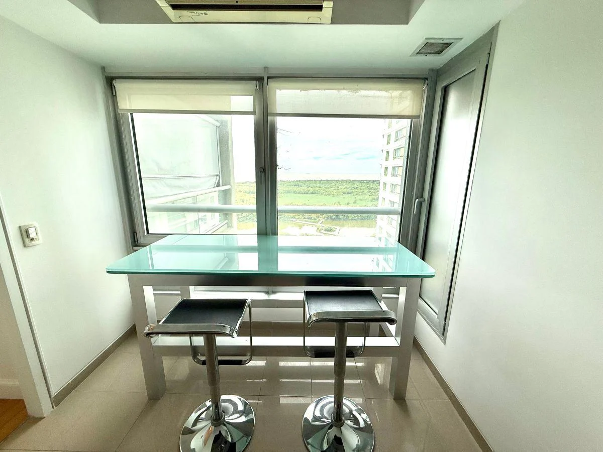 Al ingresar, serás recibido por un amplio y luminoso living-comedor que ofrece impresionantes vistas hacia la laguna y la reserva ecológica. Los grandes ventanales permiten la entrada de luz natural y crean un ambiente acogedor, además de dar acceso a un balcón perfecto para disfrutar de la vista. Este espacio cuenta con un sistema eléctrico de cortinas que se pueden ajustar según tus preferencias, asegurando privacidad y confort en todo momento.