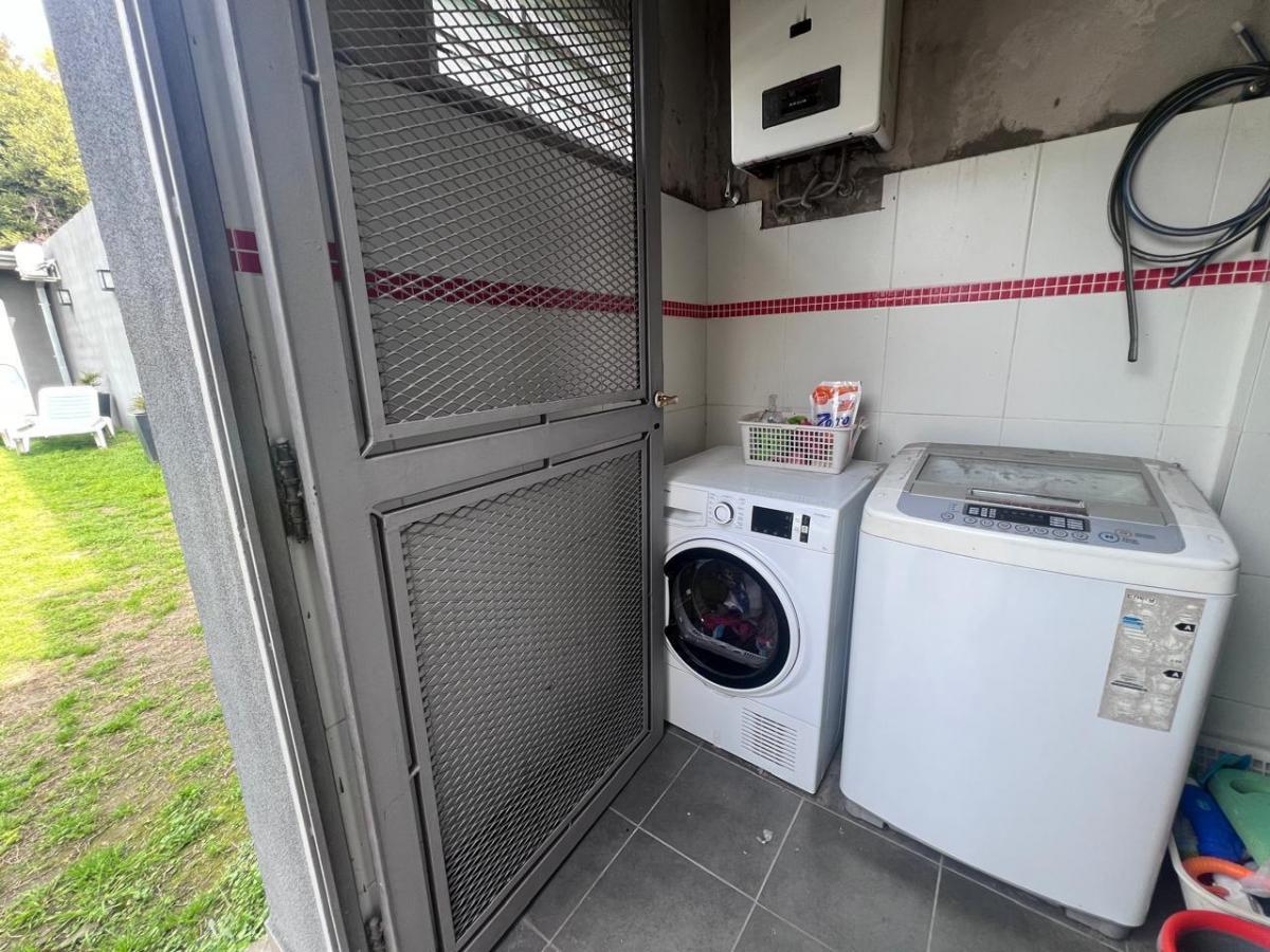 Quincho totalmente equipado: parrilla, cocina completa, muebles bajo mesada y aire acondicionado. Sus puertas corredizas de vidrio lo integran con el patio para crear un gran espacio social.