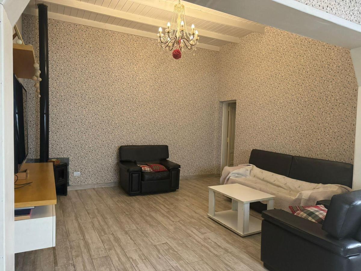 -Living acogedor con hogar a leña, estufa de tiro balanceado y pisos de porcelanato símil madera.