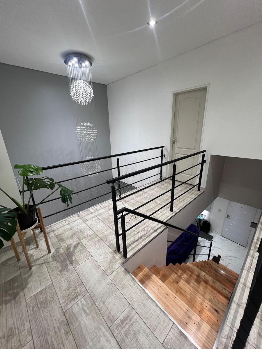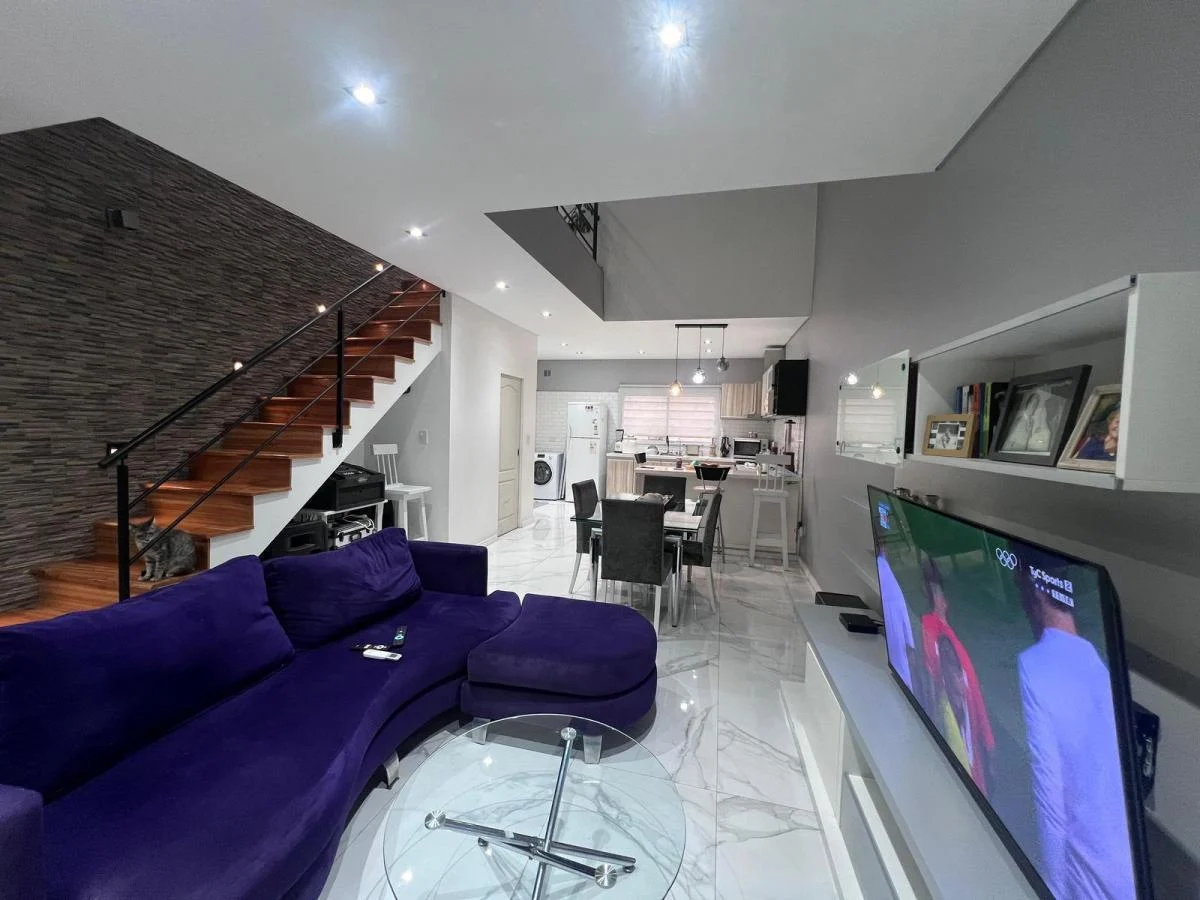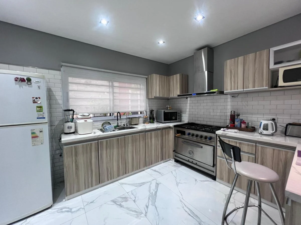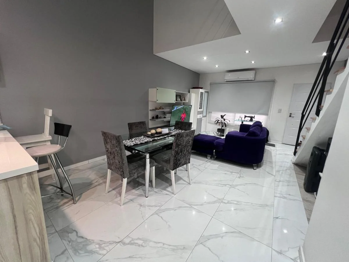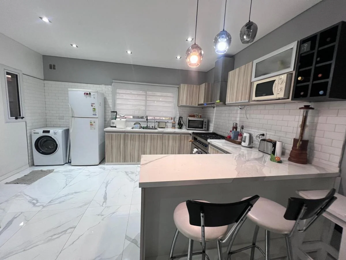 -Planta baja luminosa y funcional: living comedor con pisos de porcelanato, cocina integrada con barra desayunadora y muebles de alta calidad.