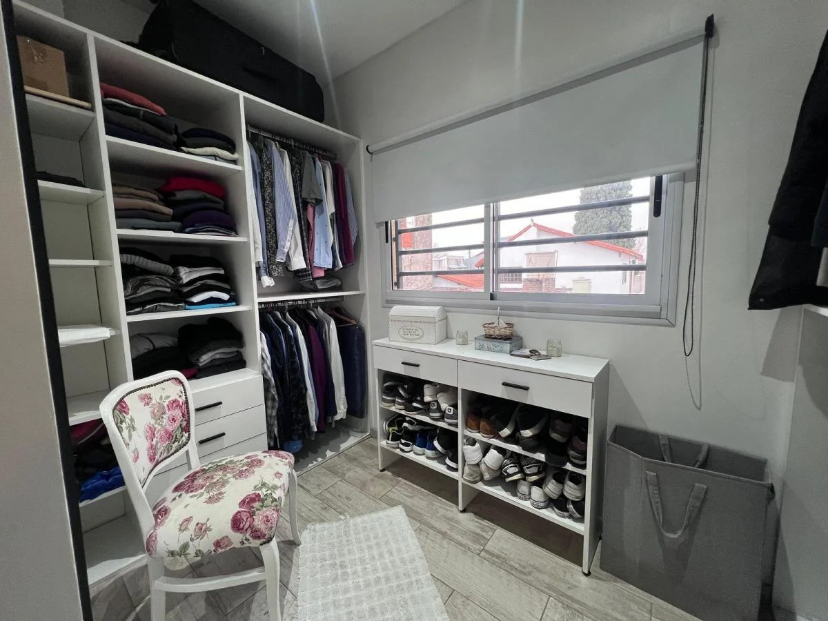 -Dormitorio principal en suite con amplio vestidor y baño revestido en porcelanato.