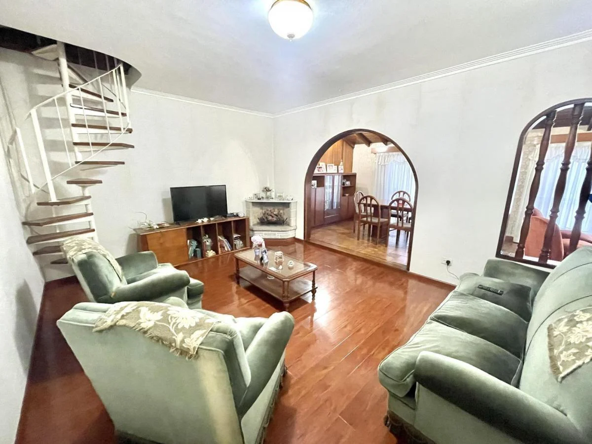 Casa de 5 ambientes en planta alta, con un encantador jardín, quincho y depósito en planta baja! Al ingresar a la propiedad, subirás por unas escaleras que te llevarán a un amplio distribuidor que conecta tanto los dormitorios como el espacioso living comedor. Los tres dormitorios son luminosos y muy amplios, todos tienen pisos de parquet proporcionando un ambiente acogedor.